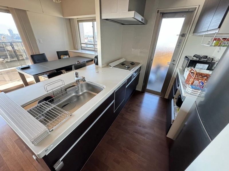 | 設備 | 都市ガス、室内洗濯機置場、宅配ボックス、2面バルコニー、複層ガラス、BS、CS、モニタ付インターホン、駐輪場、システムキッチン、カウンターキッチン、食器洗浄乾燥機、浄水器、給湯、追焚機能、浴室乾燥機、オートロック、ディンプルキー、防犯カメラ、24時間セキュリティ、ウォッシュレット、Wローゼット、バイク駐車場 | ||