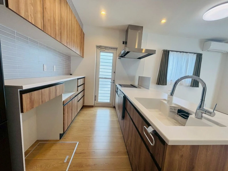 | 設備 | 上水道、下水道、電気、室内洗濯機置場、IHクッキングヒーター、モニタ付インターホン、システムキッチン、カウンターキッチン、食器洗浄乾燥機、追焚機能、浴室乾燥機、トイレ2箇所、ウォッシュレット、Wローゼット | ||